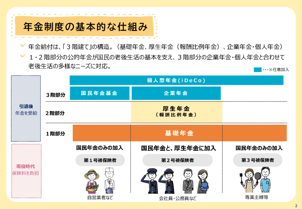 改正内容に入る前に、日本の年金制度の基本的な仕組みを確認しておきましょう。